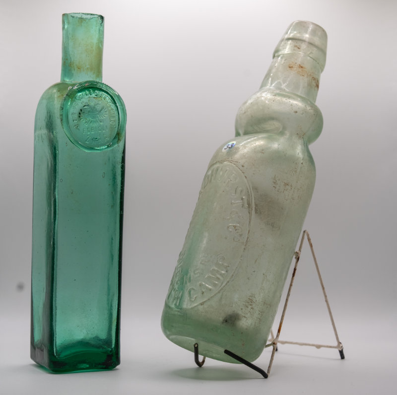 I gave him a ring and duly arranged to pick him up the following week and we went to a site on the other side of Aldershot, some waste ground that was covered in stingers and elder berry bushes (well done Mr Fletcher), I have to admit I was a little uneasy, but we didn’t climb any fences or cross any barriers and as far as I could see no signage existed, regarding trespassing. My mentor had a probe rod, he walked over the site looking for areas that had not been dug, simply by probing this rod into the ground. For me the site certainly was an eye opener with all the broken debris strewn about all over the place. I picked up a good 20 or so broken Codds bottles, I intended to clean them and make note of the companies, even at this early stage I must have been thinking about, storing information. My first dig was most enjoyable never knowing what was coming out with every fork full. I found a lot of things other diggers had left behind, especially blacking pots. Every time I scraped away the soil from around the base of a pot, that looked like a ginger beer it wasn`t.  After six hours, we returned home, I had enjoyed it. The duplicates of the broken cods were all put into one of the glass recycling containers in the local library car park.