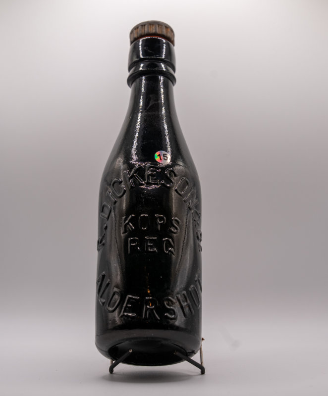 Note :- I make no excuses by including this bottle, over the years all my digging mates got to know that I coveted the possibility of digging one of them. In fact they would shout out loud each time they dug one, making it worse. It does not have either Aldershot of Farnborough on the embossing. I personally dug many, many broken examples. I did finally dig one, much to my relief. Yes I know I should not include it, but the bottle had the Holy Grail type of effect on me. It is in my opinion a LOVELY CLASS BOTTLE.