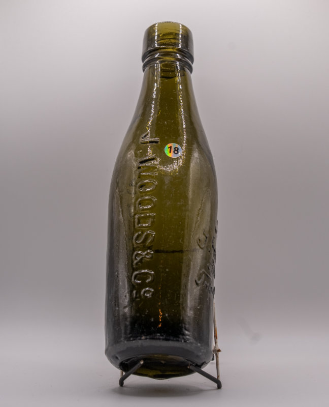Embossed Front: J WOODS & CO and ALDERSHOT in two vertical lines on the front face.