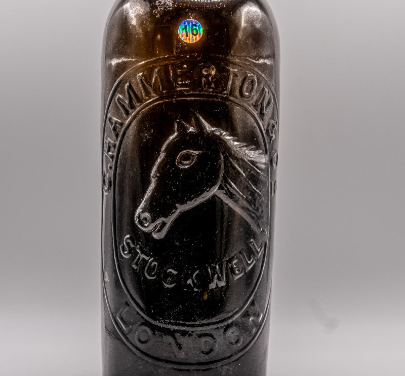 Embossed Front: Double embossed lines in a circular form containing within the circle C HAMMERTON & CO LONDON and in the centre of the circle the word STOCKWELL and the head of a horse facing left.